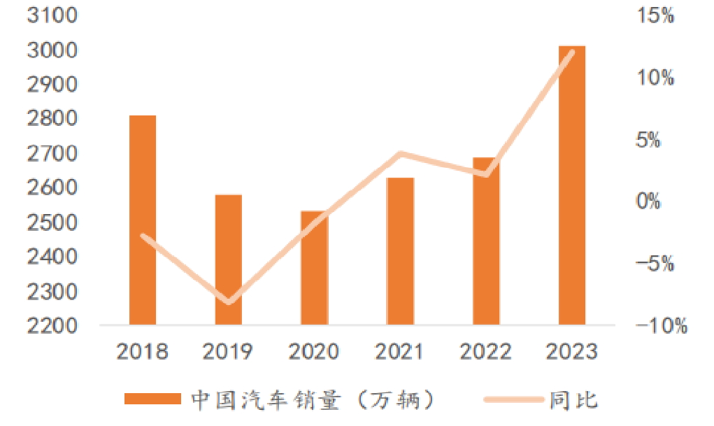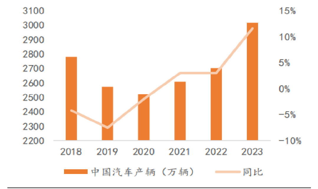 隨著疫情過后宏觀經(jīng)濟(jì)的回暖、國(guó)家政策的扶持和新能源汽車的進(jìn)一步推廣,我國(guó)汽車市場(chǎng)在2023年穩(wěn)步向上。根據(jù)中汽協(xié)數(shù)據(jù),2023年,我國(guó)汽車產(chǎn)銷分別完成 3016.1 萬輛和 3009.4 萬輛,同比分別增長(zhǎng) 11.6%和 12%,其中汽車出口 491 萬輛,同比增長(zhǎng) 58%,和上年相比,產(chǎn)量增速提升 8.2 個(gè)百分點(diǎn),銷量增速提升 9.9 個(gè)百分點(diǎn)。